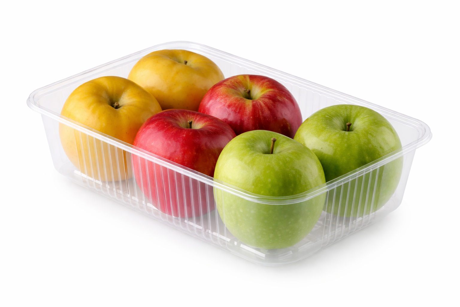 Logitray em PET/PE termoselável para acondicionar produtos alimentares.