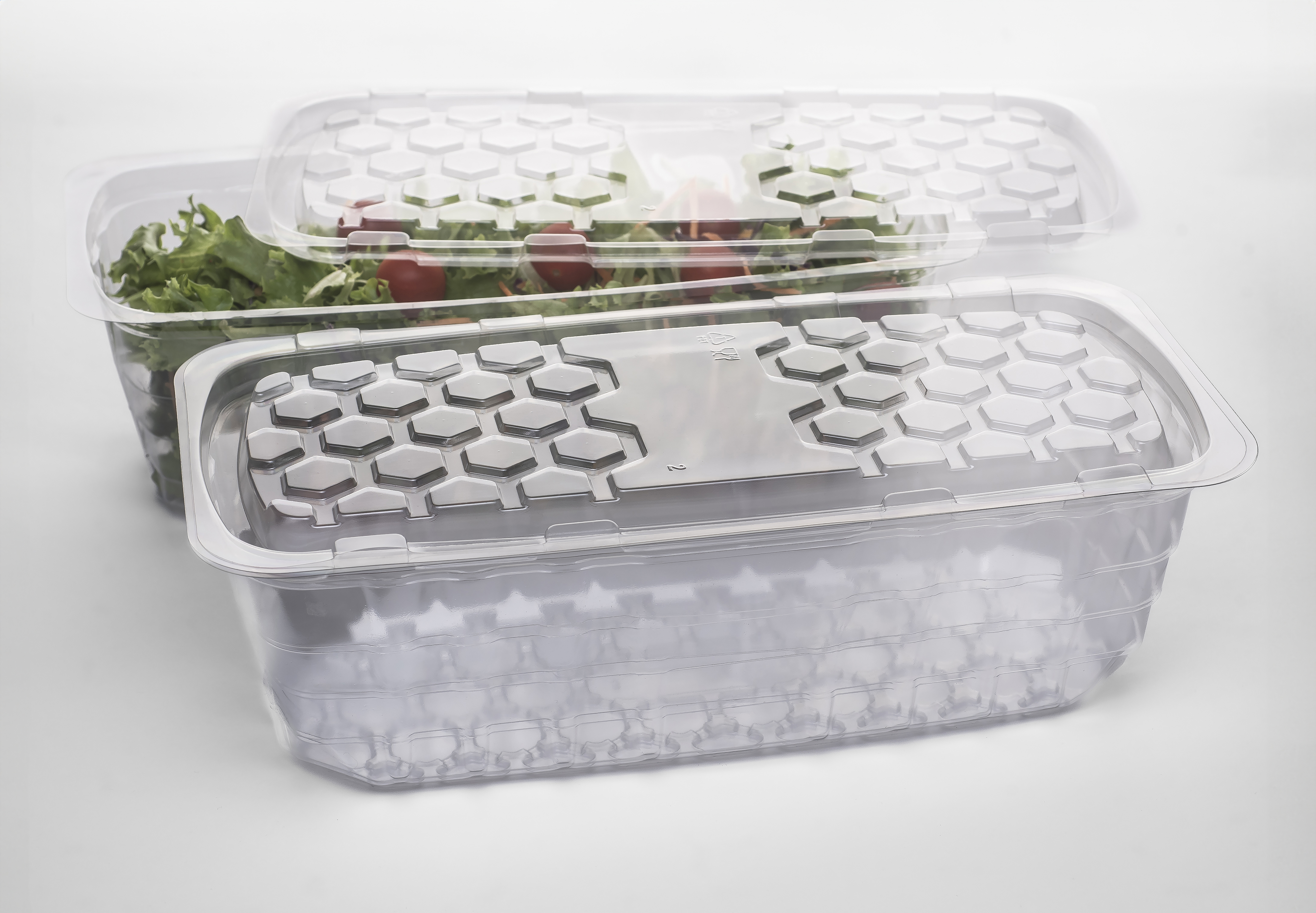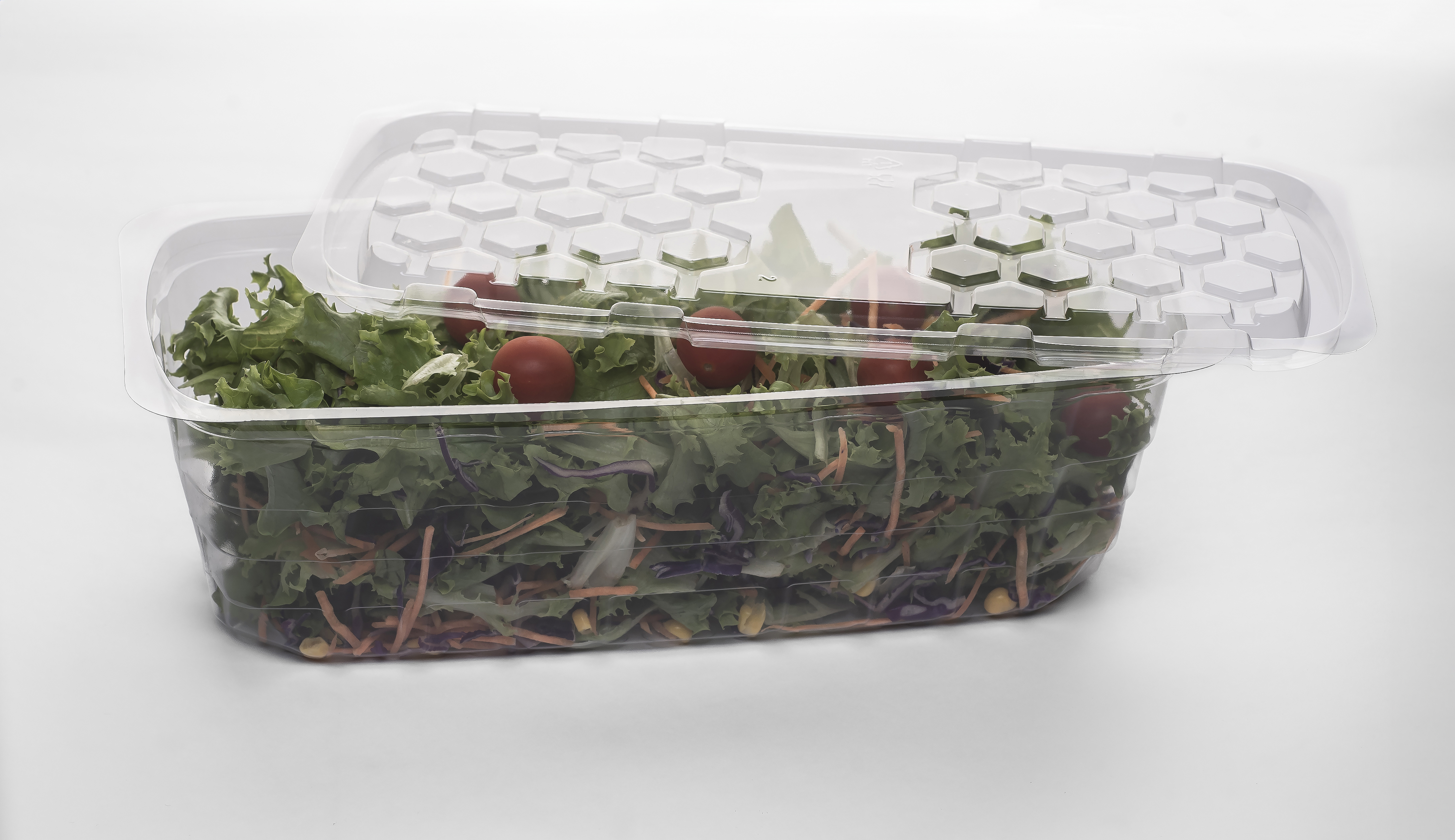 Esta embalagem alimentar com capacidade de 4.500cc é ideal para produtos frescos como saladas familiares, mix de folhas verdes ou ervas aromáticas em maior volume. Fabricada com materiais recicláveis, oferece excelente conservação da frescura, sendo indicada para armazenamento refrigerado e transporte.