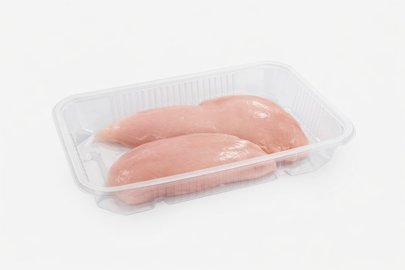Logitray em PET para flowpack para acondicionar produtos alimentares.