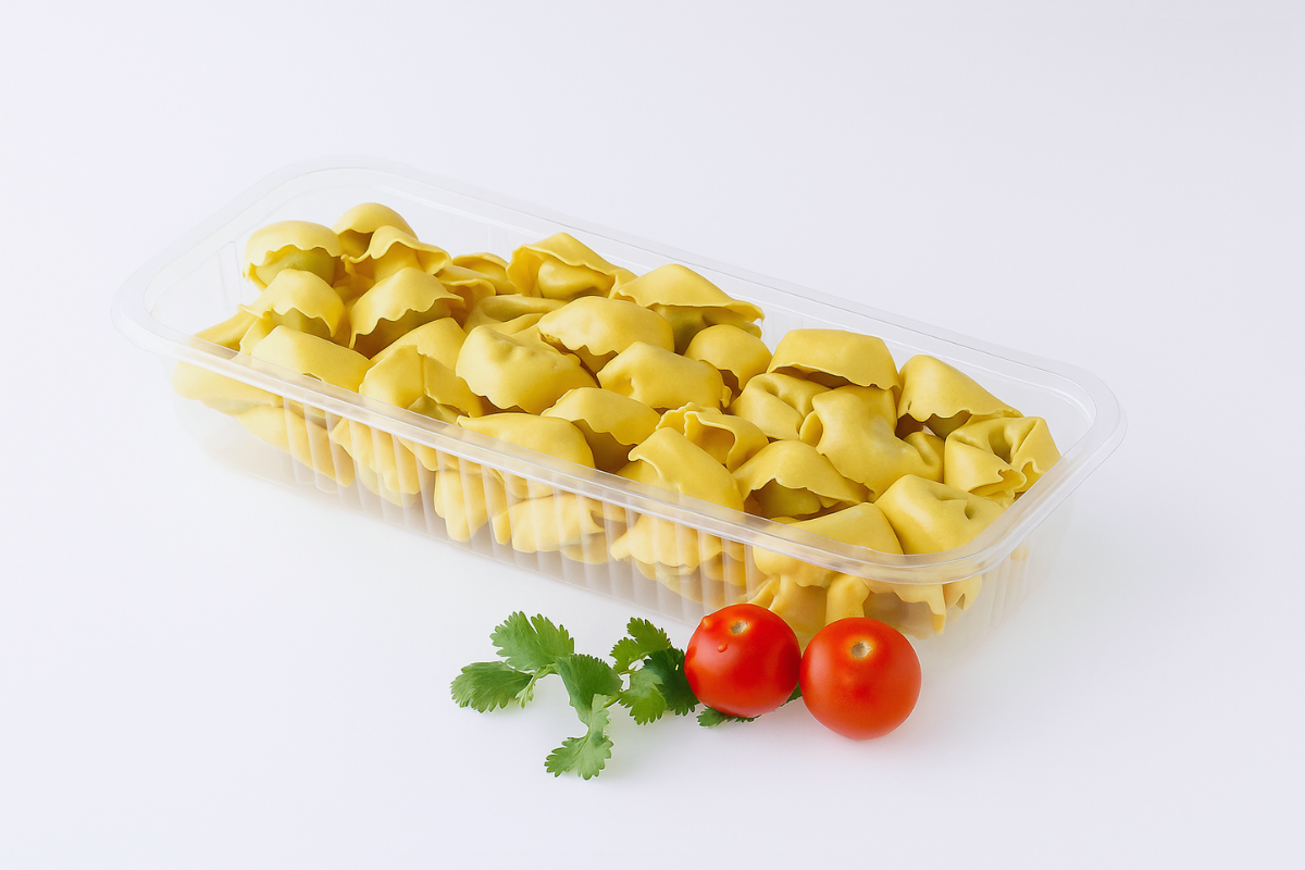 Logitray em PET para flowpack, para acondicionar produtos alimentares.