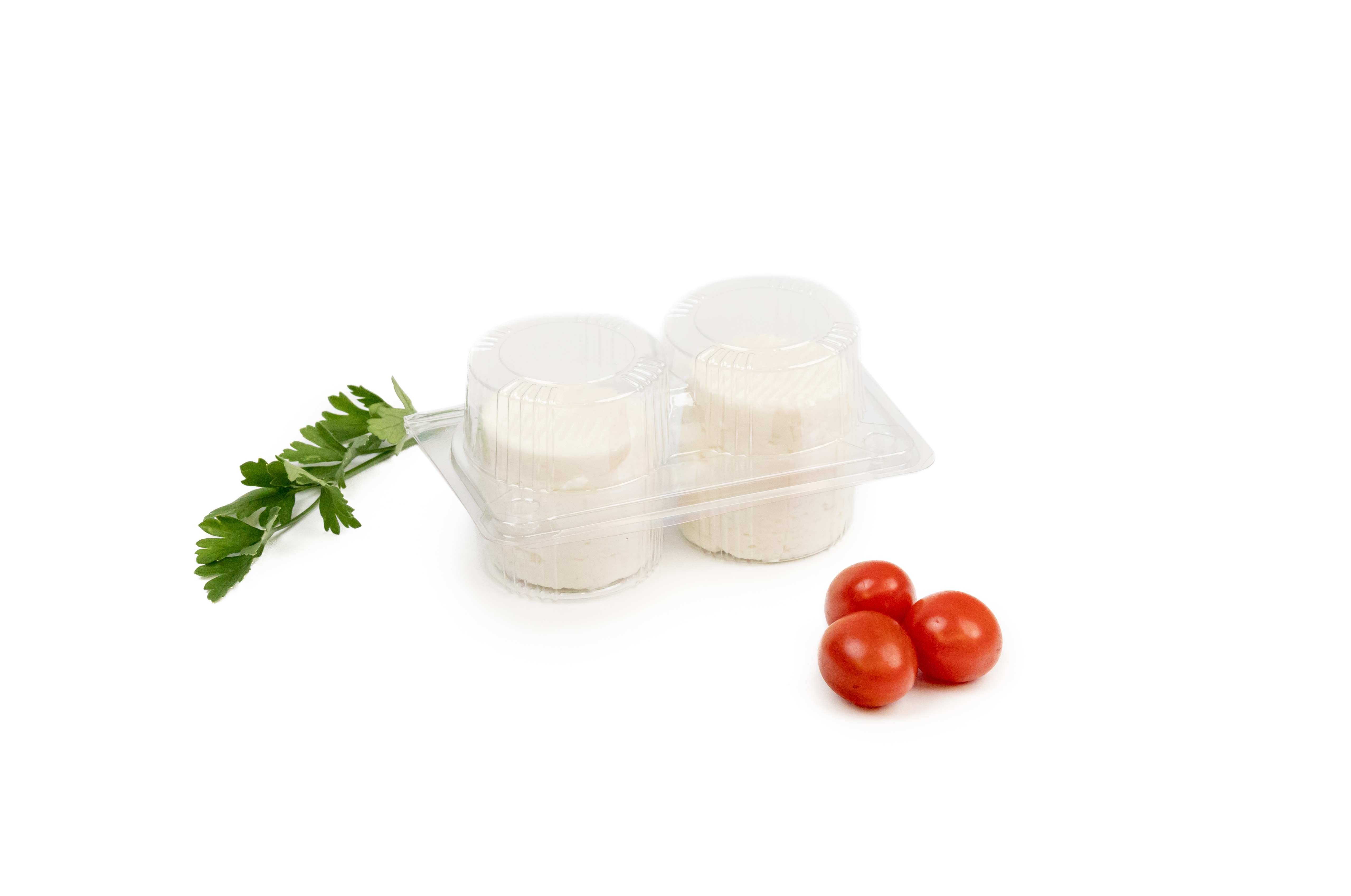Desenvolvida para acondicionar e proteger dois queijos frescos de aproximadamente 70g, esta embalagem em PET reciclado apto para contacto alimentar garante a máxima frescura, higiene e segurança alimentar até ao consumidor final.